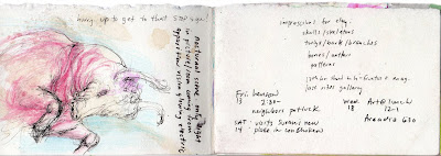 For the month of November I was carrying around a grouping of small (about 4x6 closed) bi-fold pages to keep thoughts and sketches in. I went ahead and scanned the pages before binding them all together to make it easier; usually yields a flatter, better scan that way. I'll probably bind this one with my standard coptic binding, just haven't decided on how I want to do the covering yet. I'm thinking something in purple since its been my color of choice for the moment. Hope you enjoy these playful little pages: